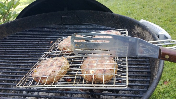 Ett sätt att grilla hamburgare är att placera dom i ”fiskgallret”. Problemet är sedan att få burgarna att släppa taget. Men genom att skrapa lite innan man öppnar gallret så brukar det gå bra.