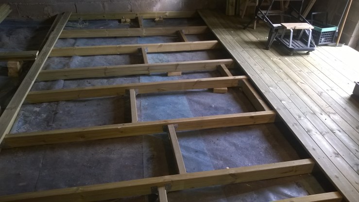 Javisst ja, bilden ovan visar mitt senaste projekt här uppe i Dalarna. Jag lägger golv nere i källaren efter att vi tidigare i sommar anlitat Anticimex för att fuktsanera.