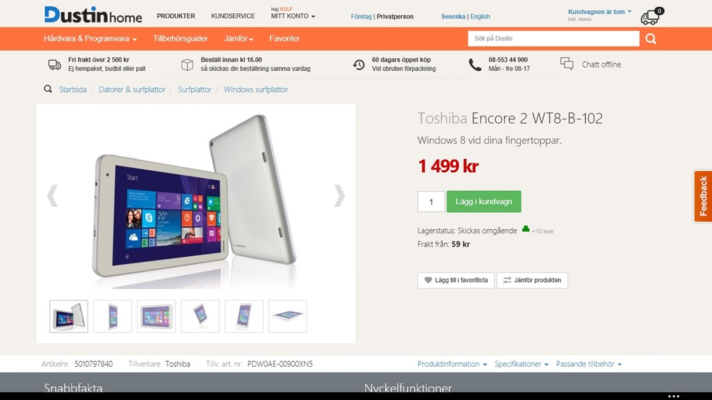 Tidigare har jag berättat om att Toshiba har en 8” pekplatta med Windows 8.1, alltså inte Windows RT som i tidiga pekplattor från Microsoft och deras hårdvarupartners. När det idag finns Toshiba Encore 2 WT8-B-102 att köpa hos Dustin Home för under 1.500 spänn så måste jag helt enkelt testa hur det är att köra Windows 8.1 på en pekplatta. Hmm…
