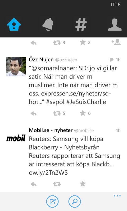Twitter blir en helt annan applikation via Flipboard. Mer som en “hemsida” än den korta meddelandetjänst som är Twitters kännetecken. Visst är det coolt att bläddra och se varje inlägg expanderat med bilder och längre texter men jag föredrar originalversionen som Twitter fungerar i exempelvis Windows Phone 8.1.