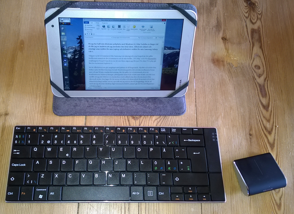 Det är tillbehören som gör umgänget med plattan så väl fungerande. Skyddet och stödet från Deltaco plus det av Clas Ohlson från Kina importerade Windowstangentbordet samt Microsoftmusen börjar mer och mer bli min standardutrustning.