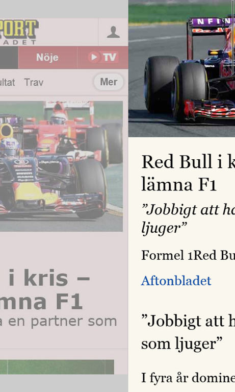 I bilden till höger har jag svept halvvägs och ser då originalartikeln i “utgråad” version.