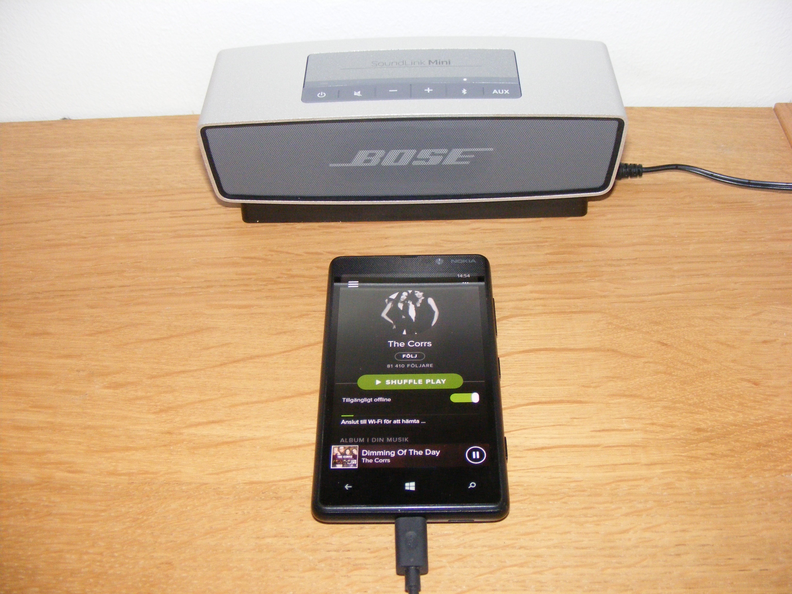 Så har jag äntligen fått hem min nya ljudmaskin med namnet Bose SoundLink Mini (Uttalas boos med lång betoning på “o”) med Bluetooth som jag kopplar till mina blåtandsprylar. En liten men naggande god liten högtalare med STORT LJUD.