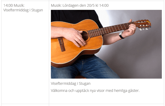 Men nu är vi som sagt var redan några stycken som kommer att lira visor mellan 14 och 16 lördagen den 20 maj. Alltså om en dryg vecka. Utöver att vi som uppträder med inövade låtar så finns det säkert möjligheter till spontana gemensamma gig. Vi som redan svarat ”jag/vi” kommer har en bred repertoar inte bara av visor utan även av annat. Vad det är, får ni se och höra ni som kommer.