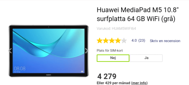 Huawei 10,8 kostar 4.279 på Elgiganten och finns i Falun. Jag får åka dit vid tillfälle och känna och klämma samt undersöka saken närmare. Ska även passa på att känna på en 12,9″s iPad samt känna om jag ska satsa på en sådan istället. Men å andra sidan så börjar jag gilla Android, så varför inte?
