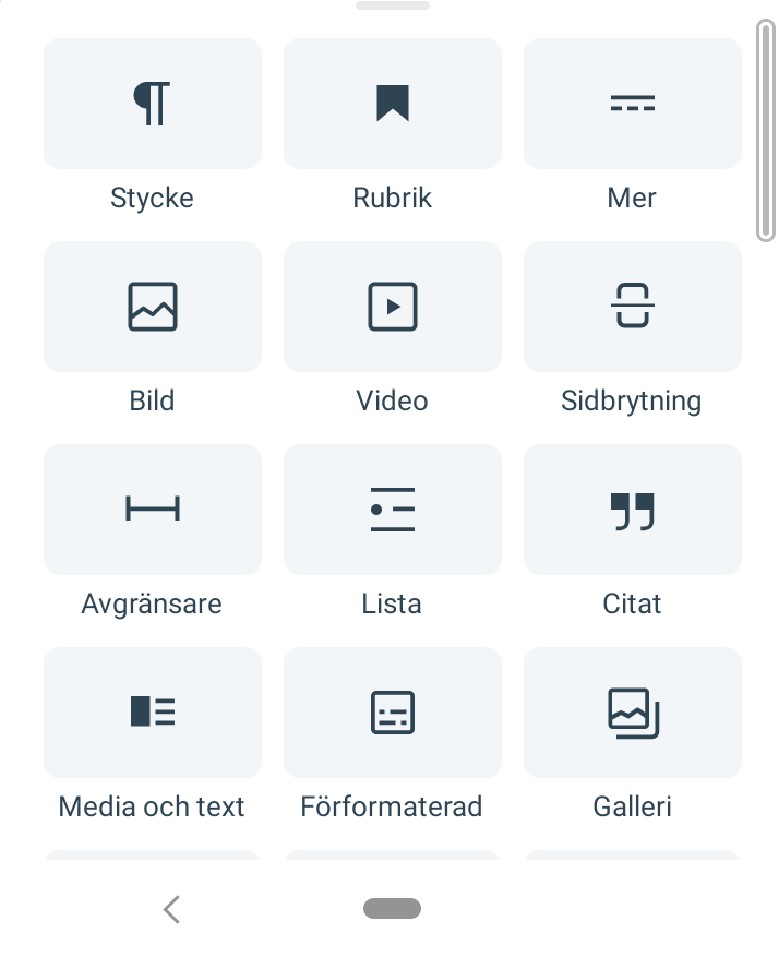- Nu ser du alla tillägg du kan göra (se bilden) och bland dem även en ikon för listor även om det visar en onumrerad lista.
