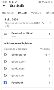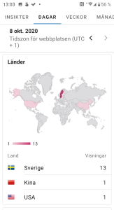 Eller är det robotar som surfar och bara sammanställer statistik? I alla fall är det bra att WordPress presenterar vilka länder samt hur besöken går till. I de här fallen via sökmotorer.