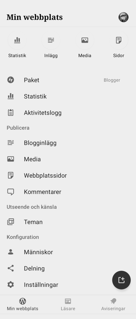 Det var i efterdyningarna av mitt förra inlägg som jag började fundera på om jag tänkt rätt. Så för att du skall förstå mitt sätt att tänka i just det här ämnet så behöver jag först visa en bild på vad en app i min telefonen kan göra, nämligen min WordPress-app.