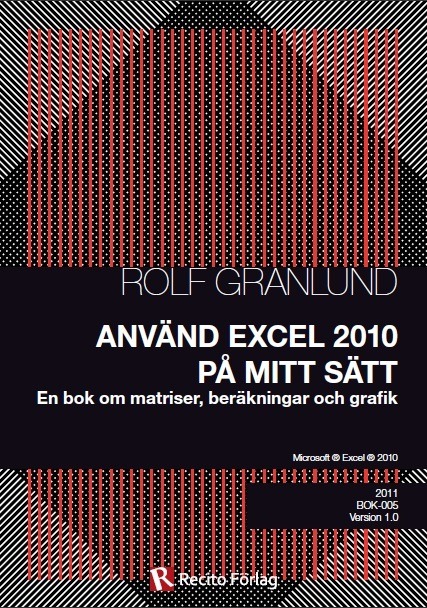 Använd Excel 2010 på mitt sätt är min senaste bok. Boken är undantaget som bekräftar regeln. Min ambition att ge ut böcker med ett sidantal runt 100 kom på skam men är en fingervisning om vad Excel är, nämligen det mest omfattande programmet inom Office. Boken står för sig själv även om mycket handlar om Excel i samband med projekt. Jag går från grundläggande delar i Excel för att kröna det hela med ett exempel på hur du bygger en projektkalkyl. Ett annat fokus är pivot-tabeller och pivot-diagram mycket beroende på att boken skrevs för att komplettera nästa bok i serien. Project 2010 använder nämligen pivot-diagram i en av rapportmodulerna. På så sätt slapp jag beskriva den delen av Project 2010 i just den boken.